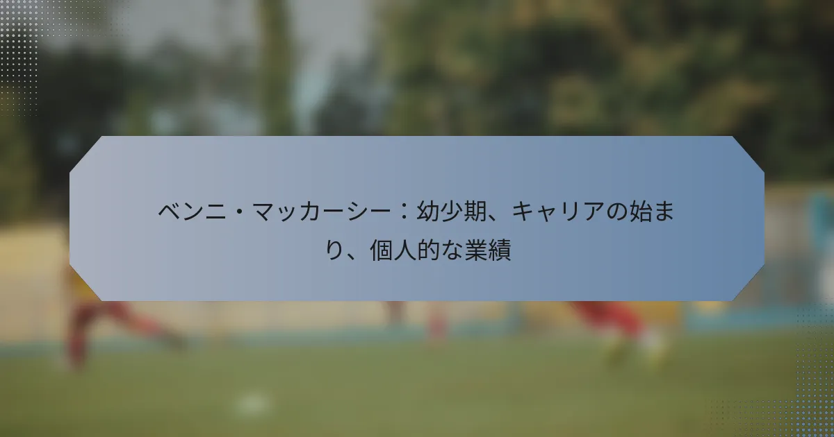 ベンニ・マカーシーは、南アフリカのサッカー界で著名な人物であり、彼の初期の人生経験とスポーツへの強い情熱に深く影響を受けました。彼は南アフリカでキャリアをスタートさせ、スキルを磨き、将来の成功の基盤を築きました。ピッチ内外での貢献が称賛されるマカーシーの個人的な業績には、印象的なキャリア統計、数々の賞、そして母国の若者サッカーの育成へのコミットメントが含まれます。 ベンニ・マカーシーの初期の人生背景は何ですか? ベンニ・マカーシーの初期の人生は、家族、文化的影響、そして子供の頃から始まったサッカーへの情熱によって形作られました。南アフリカで育った彼にとって、これらの要素は彼の人間として、またアスリートとしての成長に大きな役割を果たしました。 子供時代と家族の影響 ベンニ・マカーシーは1977年に南アフリカのケープタウンで生まれ、スポーツとコミュニティを重視する家族に育ちました。彼の父親は元サッカー選手であり、幼い頃からゲームへの愛情を植え付けました。この家族の支援は、彼がサッカーへの情熱を追求することを奨励し、教育と規律の重要性を強調しました。 活気ある地域で育ったベンニは、サッカーへの熱意を共有する子供たちに囲まれていました。この環境は、仲間意識と競争心を育み、彼のスポーツでの成功への欲望をさらに掻き立てました。 教育と形成的な経験 マカーシーは地元の学校に通い、学業と成長するサッカーキャリアを両立させました。彼は学業とスポーツの両方に対する献身を示し、しばしば学校のトーナメントや地域リーグに参加していました。これらの経験は、彼にチームワークスキルと競争心を育む手助けをしました。 思春期の間、彼は構造化されたトレーニングとより競争的なプレーへの露出を提供するユースアカデミーに参加しました。これは彼の教育における重要な瞬間であり、スキルを磨き、スカウトからの認識を得る機会を与えました。 彼の人格を形成する重要な出来事 マカーシーの初期の人生で最も重要な出来事の一つは、南アフリカのナショナルユースチームに選ばれたことでした。この成果は彼の自信を高めただけでなく、国際舞台での貴重な経験を提供しました。これは、プロサッカーキャリアを追求するという彼のコミットメントを固める転機となりました。 さらに、南アフリカにおける経済的困難や社会問題に直面することで、彼はレジリエンスと決意を学びました。これらの経験は彼の人格を形成し、プロアスリートの生活の浮き沈みに備える手助けをしました。 サッカーへの初期の関心 ベンニのサッカーへの関心は幼い頃から明らかで、友人たちと一緒に街や地元の公園で何時間もプレーしていました。彼の自然な才能はすぐに明らかになり、プロキャリアを夢見るようになりました。彼は地元のヒーローや国際的なスターを idolize し、熱心に練習する動機となりました。 思春期に達する頃には、マカーシーはすでに地元リーグで名を馳せ、得点能力と技術的スキルを披露していました。彼の初期のパフォーマンスはスカウトの目を引き、最終的にプロデビューへの道を開く機会をもたらしました。 南アフリカで育つ文化的背景 南アフリカのアパルトヘイト後の時代に育ったことは、マカーシーの世界観に大きな影響を与えました。国の文化的多様性と豊かな遺産は、彼の育成に独特の背景を提供しました。サッカーは、結束と進歩を求める社会において統一の力として機能しました。 彼のコミュニティが直面した経済的不平等や社会問題は、彼に忍耐と希望の理解を形作りました。この文脈でのマカーシーの経験は、彼のサッカーへの情熱を掻き立てるだけでなく、成功を収めた際にコミュニティに還元する責任感を植え付けました。 ベンニ・マカーシーはどのようにサッカーキャリアを始めましたか? ベンニ・マカーシーは南アフリカでサッカーキャリアを始め、若い頃からスキルを磨きました。彼の初期のトレーニングと競技経験は、プロサッカーにおける将来の成功の基盤を築きました。 最初のサッカークラブと初期のトレーニング マカーシーの最初のサッカークラブはセブン・スターズのユースチームで、そこで彼はスキルを磨き、才能を披露しました。彼のトレーニングは、技術的スキルとチームワークを重視した厳しい練習セッションを含んでいました。 セブン・スターズでは、彼の可能性を認め、成長を促す経験豊富なコーチから指導を受けました。この初期の競争的なサッカーへの露出は、彼に自信と強い労働倫理を築く手助けをしました。 プロサッカーにおける初期の課題 プロサッカーへの移行は、マカーシーにとってポジション争いの激しい競争やパフォーマンスへのプレッシャーなど、いくつかの課題をもたらしました。特に若さと経験不足から、彼の能力に対する懐疑的な見方に直面しました。 さらに、シニアレベルのプレーにおける身体的要求に適