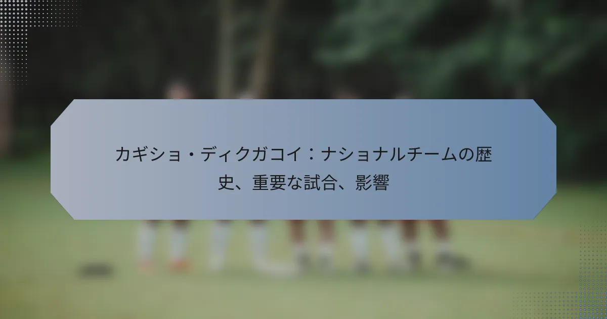 カギショ・ディクガコイは、南アフリカ代表チームとの顕著な歴史を持ち、早期のデビューとさまざまなトーナメントでの重要な貢献が特徴です。重要な試合での彼のパフォーマンスは、彼のスキルを示し、重要な選手としてのレガシーを確立しました。また、彼のリーダーシップとメンターシップは、チームのダイナミクスや南アフリカの若いサッカー選手たちに影響を与えました。 カギショ・ディクガコイの代表チームの歴史は? カギショ・ディクガコイは、南アフリカ代表チームとの顕著な歴史を持ち、早期のデビューとさまざまなトーナメントでの重要な貢献が特徴です。彼のプレースタイルとフィールドでのリーダーシップは、南アフリカのサッカーにおいて重要な存在となりました。 デビュー年と代表チームでの初期キャリア ディクガコイは2000年代中頃に南アフリカ代表チームでデビューし、すぐに信頼できるミッドフィールダーとしての地位を確立しました。彼の初期の出場は、ゲームをコントロールし、守備に貢献する能力を示しました。 当初、彼は以前の成功から再建中のチームの一員であり、彼のパフォーマンスはチーム内での地位を固めるのに役立ちました。彼の労働倫理と戦術的な意識は最初から明らかで、チームメイトやコーチからの尊敬を集めました。 南アフリカでの総キャップ数と得点 国際キャリアを通じて、ディクガコイは多くのキャップを獲得し、代表チームにおける重要性を反映しています。彼の得点数はミッドフィールダーとしては特に高くはありませんが、南アフリカの試合における競争力を高める重要なゴールが含まれています。 彼の総キャップ数は20回前後で、数年間にわたる一貫した選出を示しています。このレベルの参加は、代表チームでの彼の重要な役割を強調しています。 参加した重要なトーナメント ディクガコイは、アフリカネイションズカップやFIFAワールドカップなど、複数の重要なトーナメントで南アフリカを代表しました。これらのイベントへの参加は、彼に大きな舞台での貴重な経験を提供しました。 アフリカネイションズカップ:いくつかの大会に参加し、チームのミッドフィールダーとしての強さに貢献しました。 FIFAワールドカップ:トーナメントに出場し、国際キャリアの頂点を迎えました。 これらのトーナメントは、彼のスキルを示すだけでなく、プレッシャーの中でのパフォーマンス能力を際立たせ、南アフリカのサッカーにおけるレガシーをさらに固めました。 達成したマイルストーンと記録 代表チームでの彼の時間の中で、ディクガコイはいくつかのマイルストーンを達成し、彼の貢献を強調しました。彼は重要な試合での信頼できるパフォーマンスで知られ、必要なときにしばしば活躍しました。 高いレベルのプレーを一貫して維持する能力により、彼は主要なトーナメントの予選を含む重要な瞬間に代表チームの一員であり続けました。これらの成果は、南アフリカのサッカー史において彼を尊敬される存在にしました。 彼のプレースタイルがチームに与えた影響 ディクガコイのプレースタイルは、南アフリカ代表チームに大きな影響を与え、強力な守備スキルとプレーの移行能力が特徴です。彼の視野とパス精度は、ミッドフィールダーからの攻撃構築に役立ちました。 彼は戦術的な規律で知られ、しばしば相手のプレーを破壊し、チームの攻撃戦略のための堅実な基盤を提供しました。この二面性は、守備と攻撃の両方のフェーズで彼を不可欠な選手にしました。 全体として、彼の影響は統計を超え、若い選手たちにインスピレーションを与え、チームの一体感に貢献し、南アフリカのサッカーの物語において重要な存在となりました。 カギショ・ディクガコイのキャリアを定義した重要な試合は? カギショ・ディクガコイのキャリアは、彼のスキルと代表チームへの影響を示すいくつかの重要な試合によって定義されました。重要なトーナメントや決定的な試合での彼のパフォーマンスは、南アフリカにとって重要な選手としてのレガシーを固めました。 国際トーナメントでの記憶に残るパフォーマンス ディクガコイの国際トーナメントでの際立ったパフォーマンスには、2013年のアフリカネイションズカップでの貢献が含まれます。彼のミッドフィールダーをコントロールし、相手を妨害する能力は、南アフリカが準々決勝に進出する中で明らかでした。 もう一つの重要な瞬間は、2010年のFIFAワールドカップのメキシコとの開幕戦で、彼が重要な役割を果たしたことです。彼の守備スキルは強力なミッドフィールダーの存在を維持し、ホームの観衆の前での記憶に残る1-1の引き分けに貢献しました。 さらに、2015年のアフリカネイションズカップ予選での彼のパフォーマンスも注目に値し、南アフリカのトーナメント出場を確保する重要なゴールを決め、プレッシャーの中でのパフォーマンス能力を示しました。 重要な試合の統計 試合 
