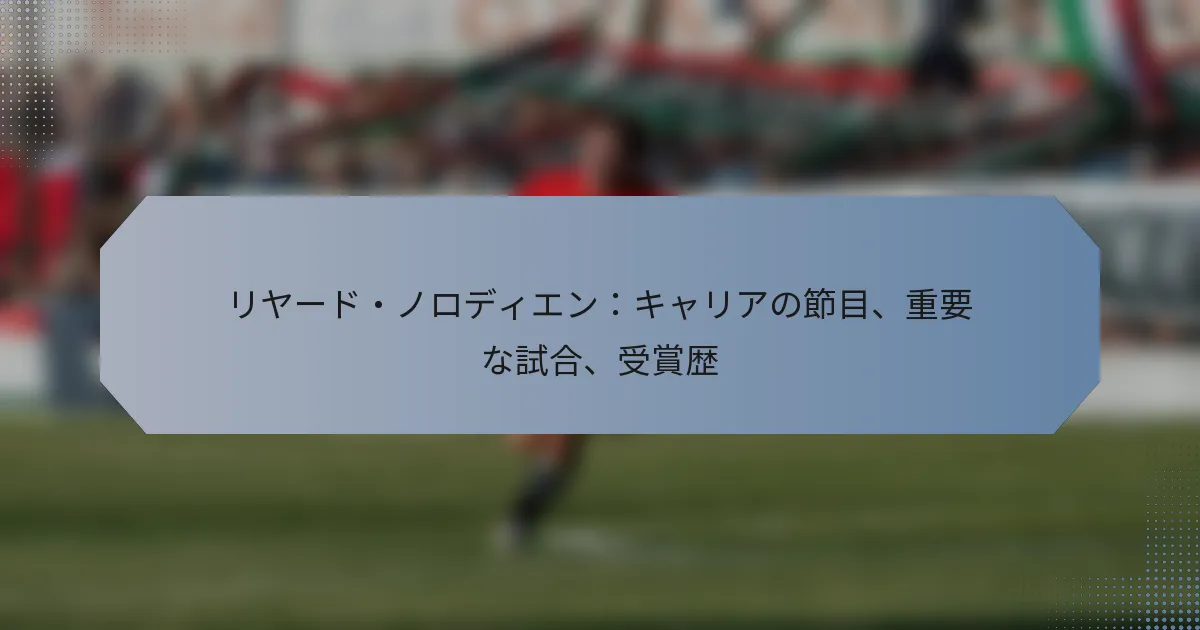 リヤード・ノロディエンは、プロデビューや影響力のある移籍を含む重要なマイルストーンに彩られた才能あるサッカー選手です。彼のキャリアを通じて、彼は国内外の競技でさまざまなチームに対するスキルと貢献を示す重要な試合に参加してきました。彼の成果は見逃されることなく、フィールドでの卓越性を称えるいくつかの賞を受賞しています。 リヤード・ノロディエンのキャリアの重要なマイルストーンは何ですか? リヤード・ノロディエンは、サッカーキャリアの中でいくつかの重要なマイルストーンを達成し、彼の才能とレジリエンスを示しています。プロデビューから注目の移籍、国際的なハイライトに至るまで、彼の旅は個人的な成長とプロとしての成功を反映しています。 プロデビューと初期のキャリア リヤード・ノロディエンは若い頃にプロデビューを果たし、南アフリカの地元クラブでフィールドに立ちました。彼の初期のキャリアには、さまざまなユースアカデミーでの経験が含まれ、そこでスキルを磨き、サッカーの強固な基盤を築きました。 彼はアヤックス・ケープタウンなどのクラブでプレーし、競争の激しい試合で貴重な経験を積みました。彼のパフォーマンスはすぐにスカウトの目に留まり、より高いリーグでの機会につながりました。 クラブ間の主要な移籍 ノロディエンのキャリアには、選手としての進展を示すいくつかの重要な移籍がありました。彼の移籍の中で重要なものの一つは、南アフリカ・プレミアディビジョンの著名なクラブ、オーランド・パイレーツへの移籍です。 異なるプレースタイルや環境に適応する能力は、これらの移行中に重要でした。各移籍は彼のプロフィールを高めるだけでなく、より高いレベルで競う機会も提供しました。 ユースリーグでの顕著な成果 ユースリーグでの彼の時間の中で、ノロディエンは素晴らしい成功を収め、チームの勝利に貢献し、彼の潜在能力を示しました。彼はユースチームをいくつかの選手権に導く上で重要な役割を果たし、得点能力とプレーメイキングスキルを示しました。 ユーストーナメントでの彼のパフォーマンスは、彼に賞賛と認識をもたらし、プロサッカーでの将来の舞台を整えました。これらの成果は、彼の才能とスポーツへのコミットメントを際立たせました。 怪我からの回復とカムバック 怪我はスポーツにおける一般的な課題であり、ノロディエンもいくつかの挫折に直面しました。大きな怪我を経験した後、彼は厳格な回復プロセスに専念し、決意とレジリエンスを示しました。 彼のカムバックは、一連の印象的なパフォーマンスによって特徴づけられ、逆境から復帰できることを証明しました。この旅は、彼の身体的能力だけでなく、精神的なタフさも強化しました。 国際キャリアのハイライト ノロディエンの国際キャリアは誇りの源であり、彼はさまざまな競技で南アフリカを代表しました。彼の代表チームでのデビューは、彼のスキルをより大きな舞台で示し、世界中のトップ選手と競う機会を与えました。 彼は地域トーナメントでのチームの努力に貢献する重要な試合に参加し、貴重な選手としての評判をさらに確立しました。彼の国際経験は、彼のキャリアを豊かにし、ゲームに対する独自の洞察を提供しました。 リヤード・ノロディエンのキャリアを定義した重要な試合はどれですか? リヤード・ノロディエンのキャリアは、彼の才能とフィールドでの影響を示すいくつかの重要な試合によって特徴づけられています。これらの重要な試合は、彼のスキルを際立たせるだけでなく、国内リーグ、カップ競技、国際トーナメントにおけるチームへの貢献を反映しています。 国内リーグでの記憶に残るパフォーマンス ノロディエンは、特に南アフリカ・プレミアディビジョンでの時間において、さまざまな国内リーグで際立ったパフォーマンスを発揮しました。得点機会を創出し、チーム全体のプレーに貢献する能力は、彼を貴重な資産にしました。 トップライバルとの試合で、彼はチームにとって重要な3ポイントを確保するための決定的なゴールを決めました。 シーズンを通じての彼の一貫したパフォーマンスは、チームがリーグの上位に終わることにつながりました。 ノロディエンのアシストやキーパスは、しばしばリーグの攻撃貢献のリーダーの中に彼を位置づけました。 カップ競技での影響力のある試合 キャリアを通じて、ノロディエンはさまざまなカップ競技で重要な役割を果たし、プレッシャーの中でのパフォーマンス能力を示しました。彼の貢献は、ノックアウトステージでしばしば決定的であり、チームを成功に導きました。 記憶に残るカップファイナルで、彼は勝利のゴールを決め、チームにトロフィーをもたらし、パフォーマンスに対して賞賛を受けました。 重要な準決勝の試合では、彼のアシストが決定的なゴールを生み出し、チームをファイナルに進出させました。 国際