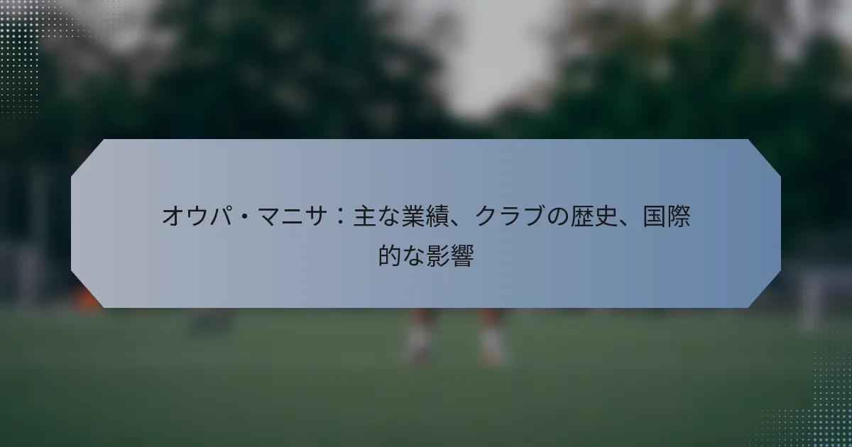 オウパ・マニサ:主な業績、クラブの歴史、国際的な影響