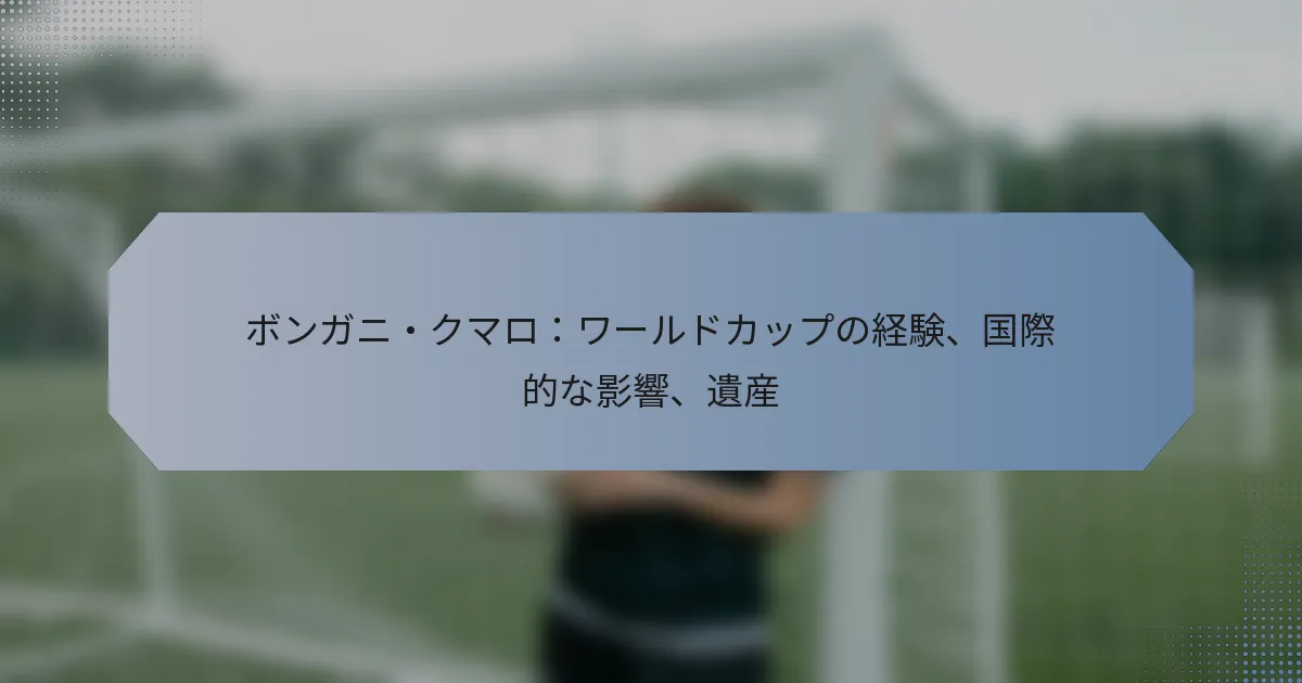 ボンガニ・クマロのサッカーにおける旅は、2010年のFIFAワールドカップでの決定的な瞬間を迎え、彼は南アフリカのディフェンダーとして国際デビューを果たしました。彼のパフォーマンスは、彼のスキルを示すだけでなく、国民の誇りを植え付け、彼の国のスポーツに持続的な影響を与えました。プレイキャリアを超えて、クマロは若者のメンターとして、地域社会の関与を促進することに専念し、彼の遺産が未来の世代にインスピレーションを与え続けることを確実にしています。 ボンガニ・クマロのワールドカップでの経験はどうだったか? ボンガニ・クマロの2010年FIFAワールドカップでの経験は重要であり、彼の国際舞台でのデビューを示し、南アフリカのディフェンダーとしてのスキルを披露しました。彼の参加は、彼の才能を際立たせるだけでなく、国民の誇りが重要な大会でのチーム全体のパフォーマンスにも寄与しました。 2010年FIFAワールドカップにおけるクマロの参加概要 クマロは2010年にワールドカップデビューを果たし、ホームの観衆の前で南アフリカを代表しました。センターバックとして、彼はチームの守備戦略において重要な役割を果たしました。彼のパフォーマンスは、強力なタックル、空中戦の能力、そしてフィールドでのリーダーシップによって特徴づけられました。 大会を通じて、クマロはバックラインの組織において重要な役割を果たし、厳しい試合の中でチームの士気を維持するのを助けました。彼の存在は守備面だけでなく、攻撃の機会が訪れた際にもチームの攻撃プレーに貢献しました。 重要な試合とパフォーマンス 南アフリカ vs. メキシコ:クマロは、1-1の引き分けに終わった開幕戦で重要な役割を果たしました。彼の守備スキルは、メキシコの攻撃の脅威を管理する上で重要でした。 南アフリカ vs. ウルグアイ:この試合では、クマロは厳しい競争に直面しましたが、彼のレジリエンスを示し、ウルグアイの得点機会を制限するのを助けました。 南アフリカ vs. フランス:クマロのパフォーマンスは注目に値し、南アフリカのワールドカップ史上初の勝利を記録した2-1の歴史的勝利に貢献しました。 南アフリカ代表チームにおける役割 クマロの南アフリカ代表チームにおける役割は、守備の任務を超えており、チームの団結と精神を育む重要な存在でした。彼のリーダーシップの資質は、若い選手を励まし、大会中にポジティブな雰囲気を維持する姿に明らかでした。 ディフェンダーとして、彼は世界のトップフォワードのマークを任され、見事なスキルでそれをこなしました。ゲームを読み、プレーを予測する能力は、彼を代表チームにとって貴重な資産にしました。 記憶に残る瞬間とハイライト クマロにとって最も記憶に残る瞬間の一つは、大会中にゴールを決めたことで、彼の攻撃的な貢献能力を示しました。このゴールは、彼の自信を高めるだけでなく、南アフリカのワールドカップの旅のハイライトとして祝われたファンを喜ばせました。 ファンとの交流も別のハイライトであり、クマロはホームの観衆の支持を受け入れました。彼のサポーターとの関わりは、大会の雰囲気を高め、国民の誇りを育むのに寄与しました。 ワールドカップが彼のキャリアに与えた影響 2010年のFIFAワールドカップは、クマロのキャリアに大きな影響を与え、彼の地元および国際的なプロフィールを高めました。彼のパフォーマンスは海外のクラブの注目を集め、南アフリカ以外のさまざまなリーグでプレーする機会をもたらしました。 ワールドカップ後、クマロの堅実なディフェンダーとしての評判は高まり、トランスファーマーケットで求められる選手となりました。この露出は、彼がスキルをさらに発展させ、競争の激しい環境で貴重な経験を得ることを可能にしました。 ボンガニ・クマロは国際サッカーにどのような影響を与えたか? ボンガニ・クマロは、南アフリカのサッカーへの貢献と国際舞台でのパフォーマンスを通じて、国際サッカーに大きな影響を与えました。彼の遺産には、若者向けのメンターシッププログラムや国際選手とのコラボレーションが含まれ、南アフリカおよびその先でのスポーツの発展を促進しています。 南アフリカのサッカー発展への影響 クマロのキャリアは、南アフリカのサッカーの風景を形作る上で重要な役割を果たしました。彼は地元の才能を促進し、若い選手がプロとしてサッカーを追求するように鼓舞しました。 2010年のFIFAワールドカップへの参加は、南アフリカのサッカーを国際的なプラットフォームで披露し、地元クラブやユースアカデミーへの投資を促しました。この露出は、南アフリカの若者の間でサッカーへの関心を高めることにつながりました。…